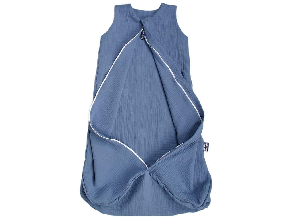 Letný spací vak z mušelínu v modrej farbe je ideálnou voľbou pre pokojný a pohodlný spánok vášho dieťaťa. Vyrobený z jemného mušelínu zo 100% bavlny, poskytuje výbornú priedušnosť a šetrnosť k citlivej pokožke. Vďaka TOG hodnote 0.83 je vhodný do teplôt 21–25 °C, čo z neho robí skvelú voľbu na teplé letné noci.