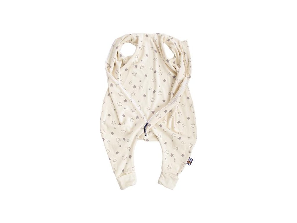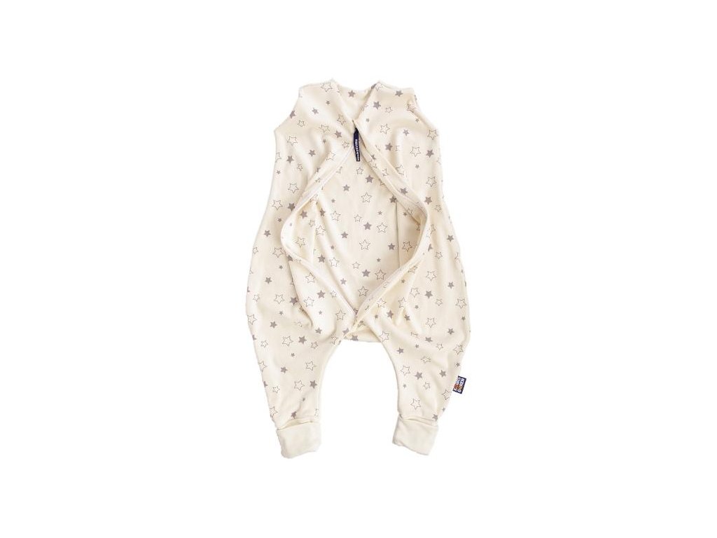 Letný bio spací vak 80 cm s nožičkami sivé hviezdičky