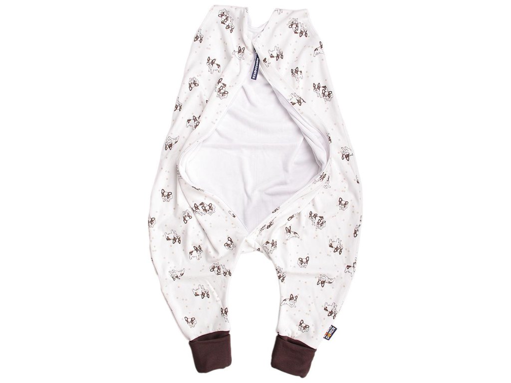 Nožičkový spací vak na leto s motívom buldočkov v dĺžke 60 cm