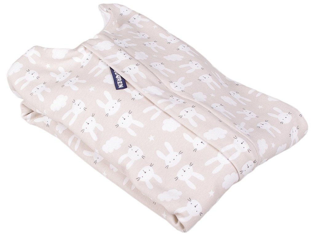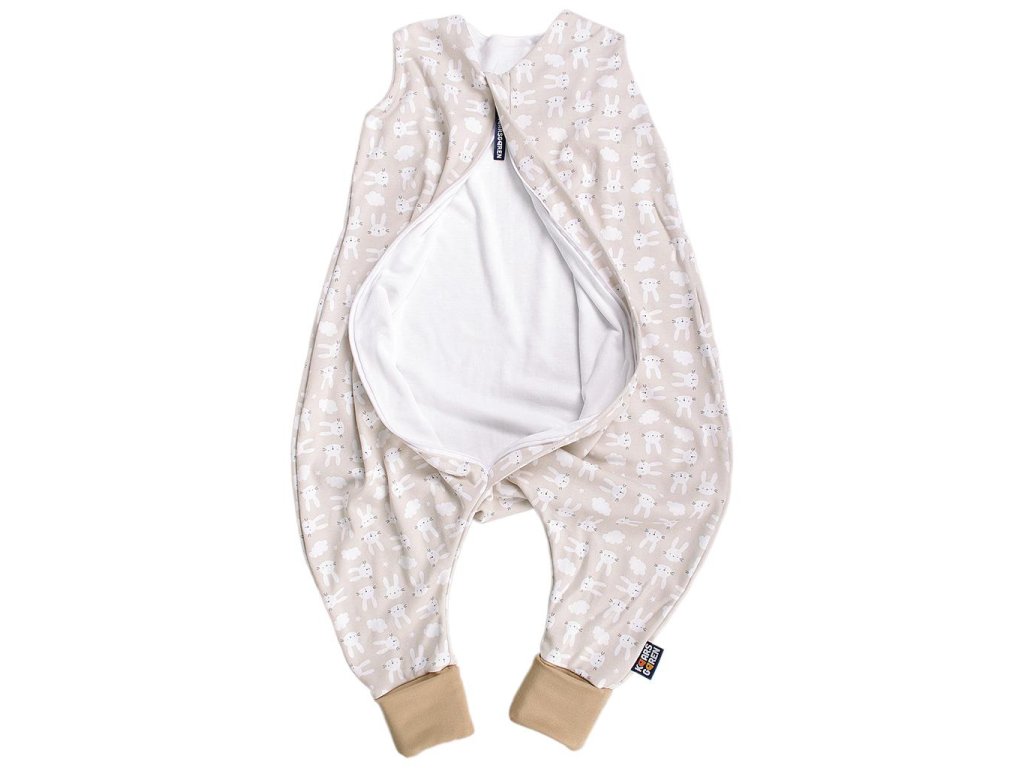 Béžový spací vak s nohavicami s podšívkou z bambusovej viskózy 100 cm zajac