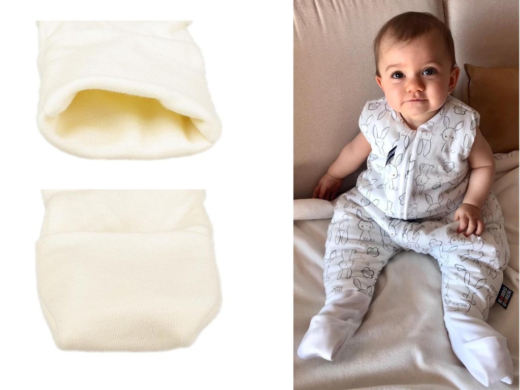 Náš spací vak s nožičkami je možné použiť ako klasický spací vak, kedy sú nohy bábätka v teple vo vnútri. Zároveň je možné u veľmi aktívnych bábätiek, ktoré počas noci kopú a pretáčajú sa vysunúť nohy von a bábätká sa potom nemôžu v spacáku pretočiť. Až bábätko povyrastie nie je nutné hneď kupovať väčší spací vak, pretože môže spať s nohami vonku a zároveň až začne chodiť nie je nutné vždy spací vak dávať dole. Spací vak je v spodnej časti rozšírený, aby v ňom chôdza bola pohodlná. Spací vak je vyrobený zo 100% bio-bavlny a zo 100% merino vlny. Zips umožní otvorenie spacieho vaku po celej dĺžke v oboch smeroch a má látkovú krytku, ktorá zabraňuje privretiu krku do zipsu. Možno prať v práčke na max 30 °C program na vlnu. Nepoužívať aviváž! Spací vak vyrábame v Českej republike.