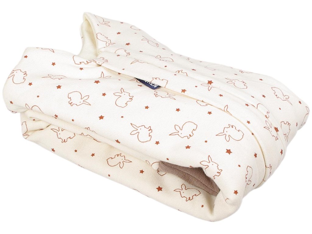 - Bio-bavlnený detský spací vak s podšívkou z merino vlny s motívom králikov.