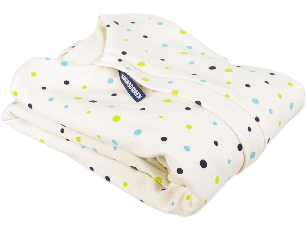 - Bio-bavlnený detský spací vak s podšívkou z merino vlny as motívom bodiek.
