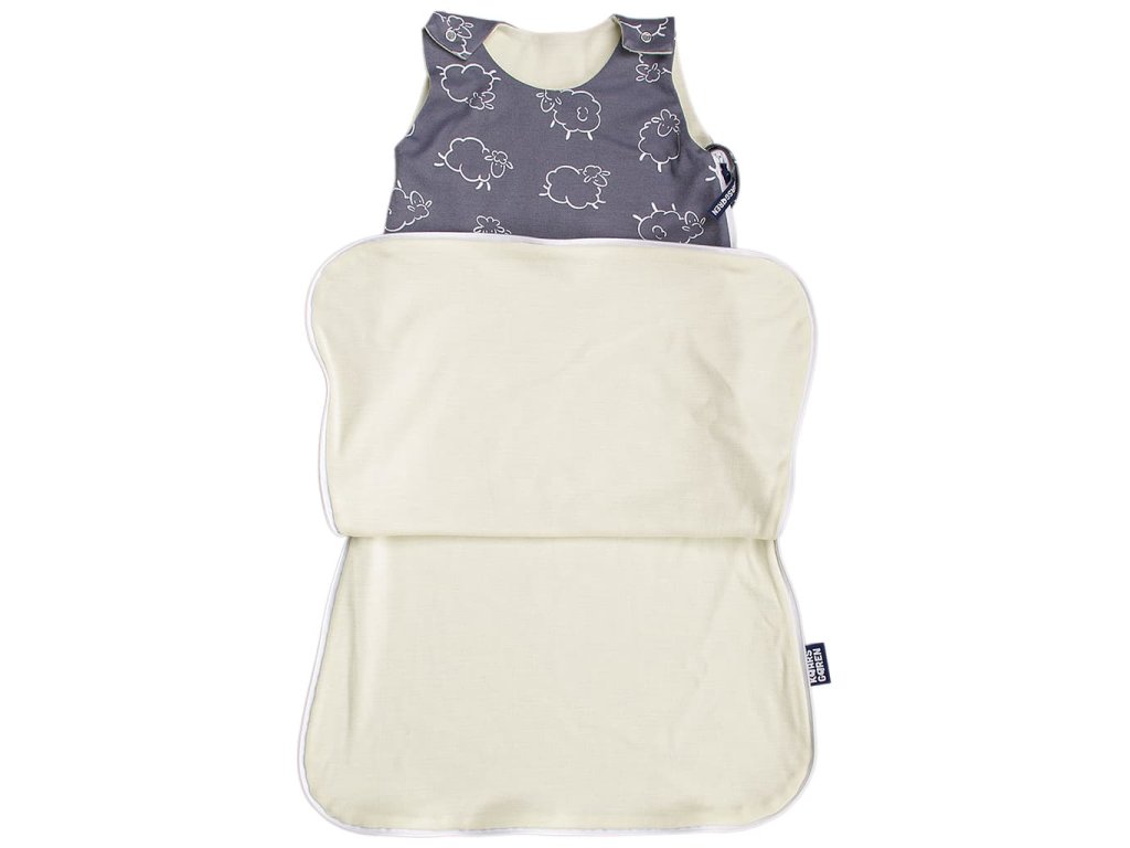 Merino spací vak pre bábätko 70 cm – sivé ovečky (zips na boku)