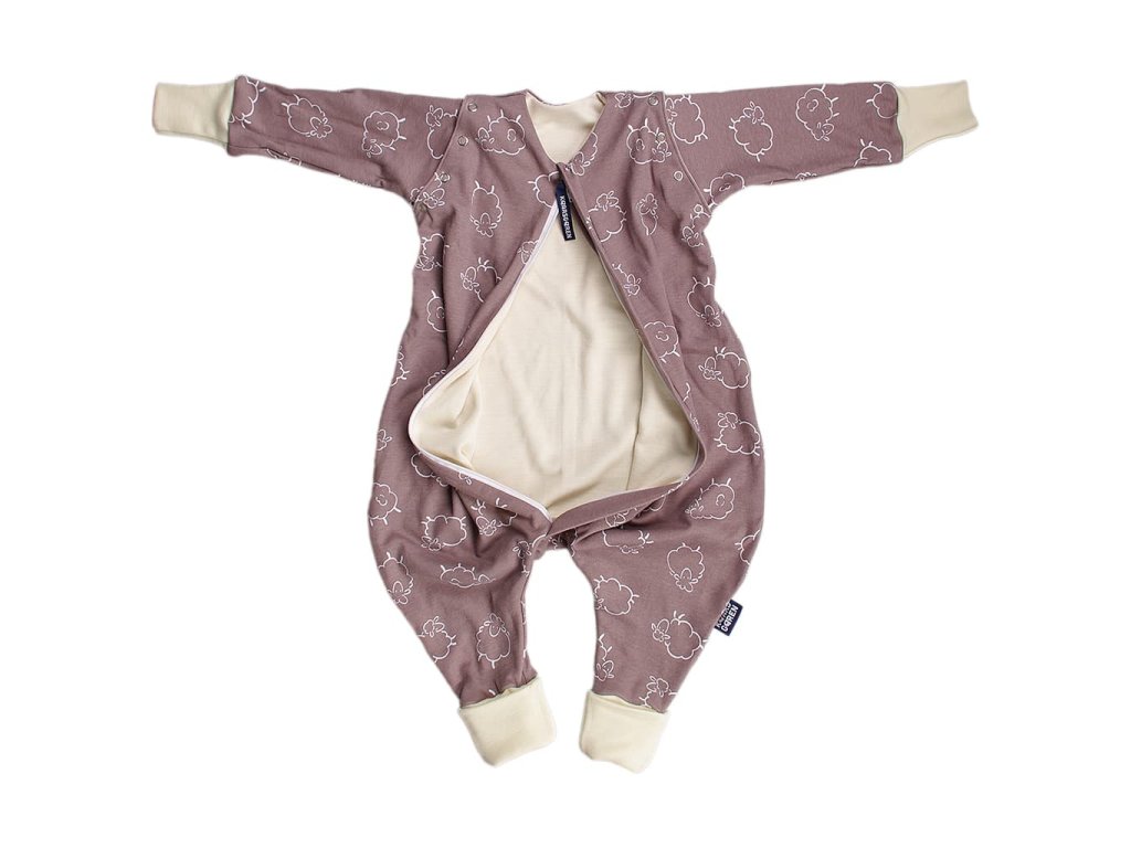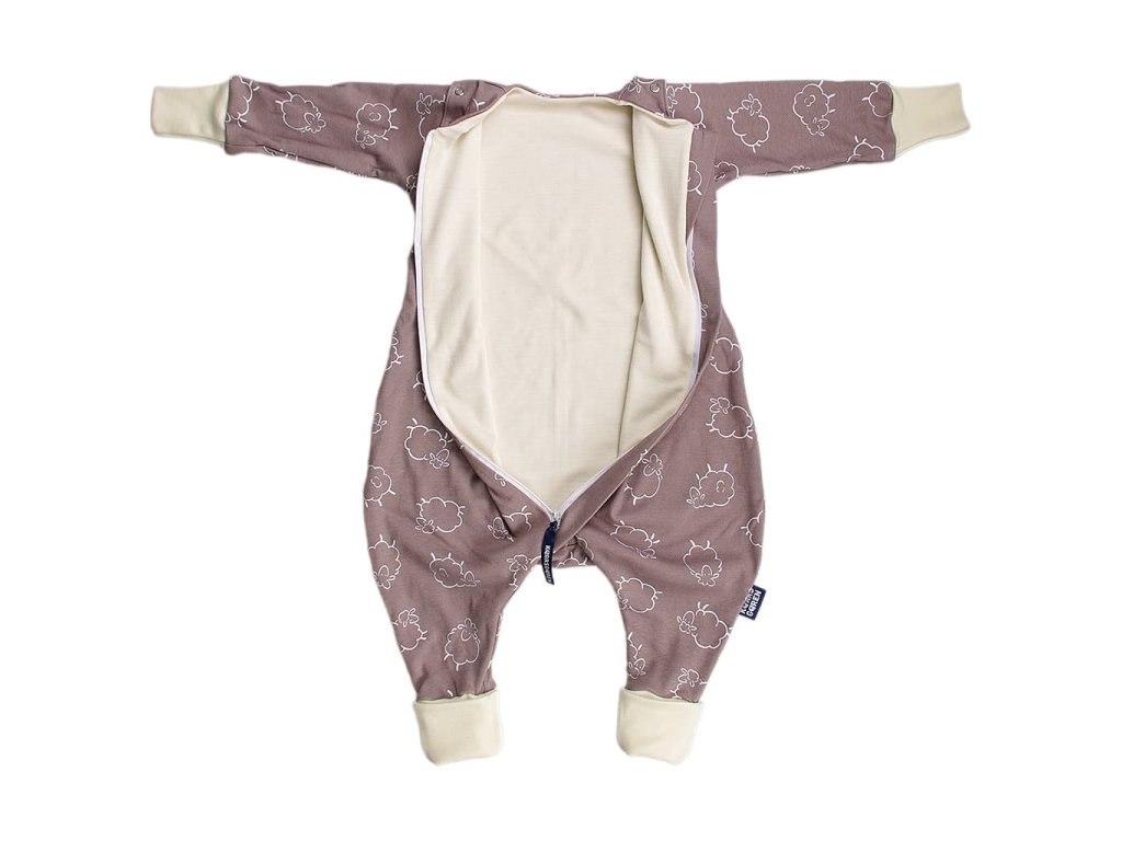 Merino spací vak s nohavicami a odnímateľnými rukávmi – hnedé ovečky (60 cm)