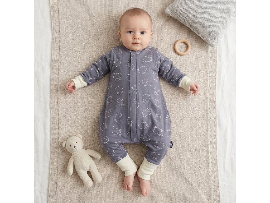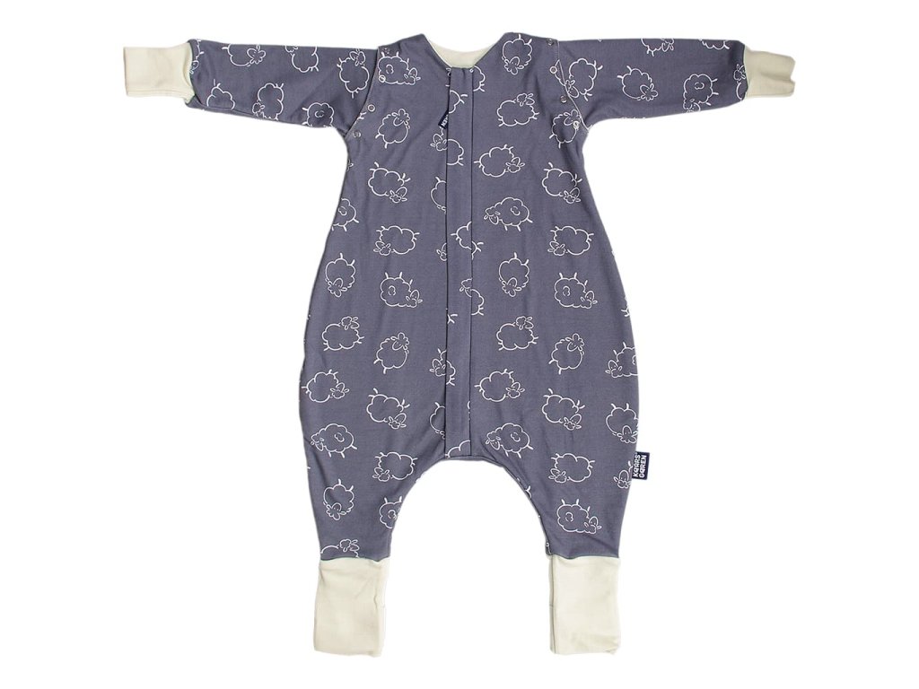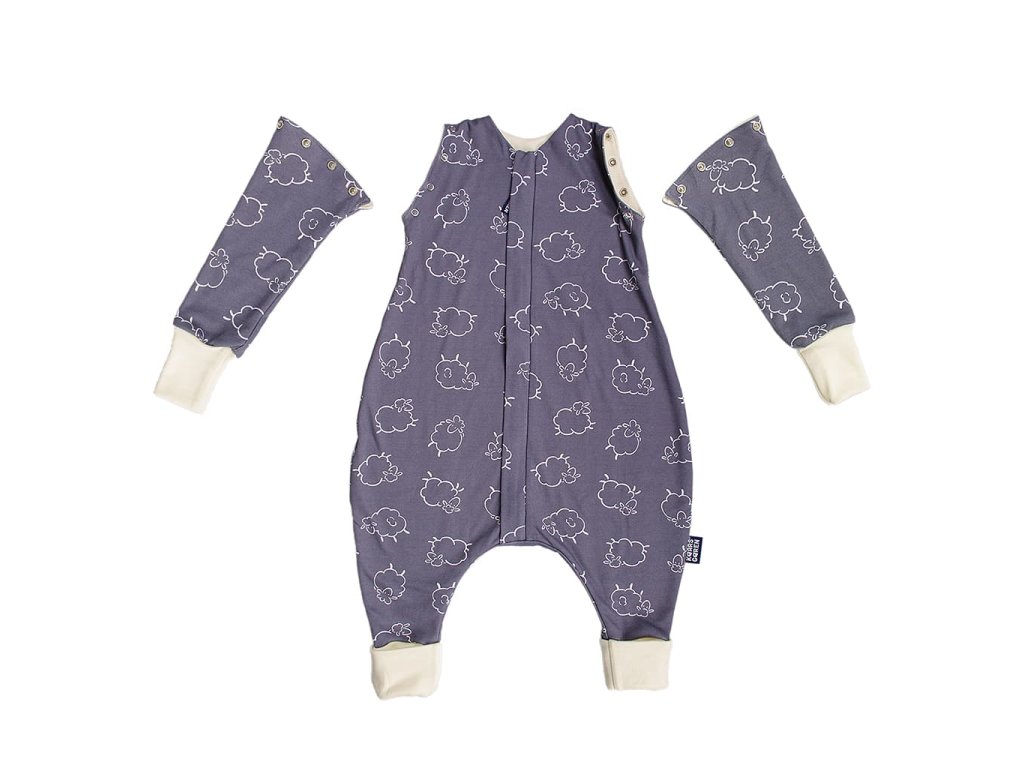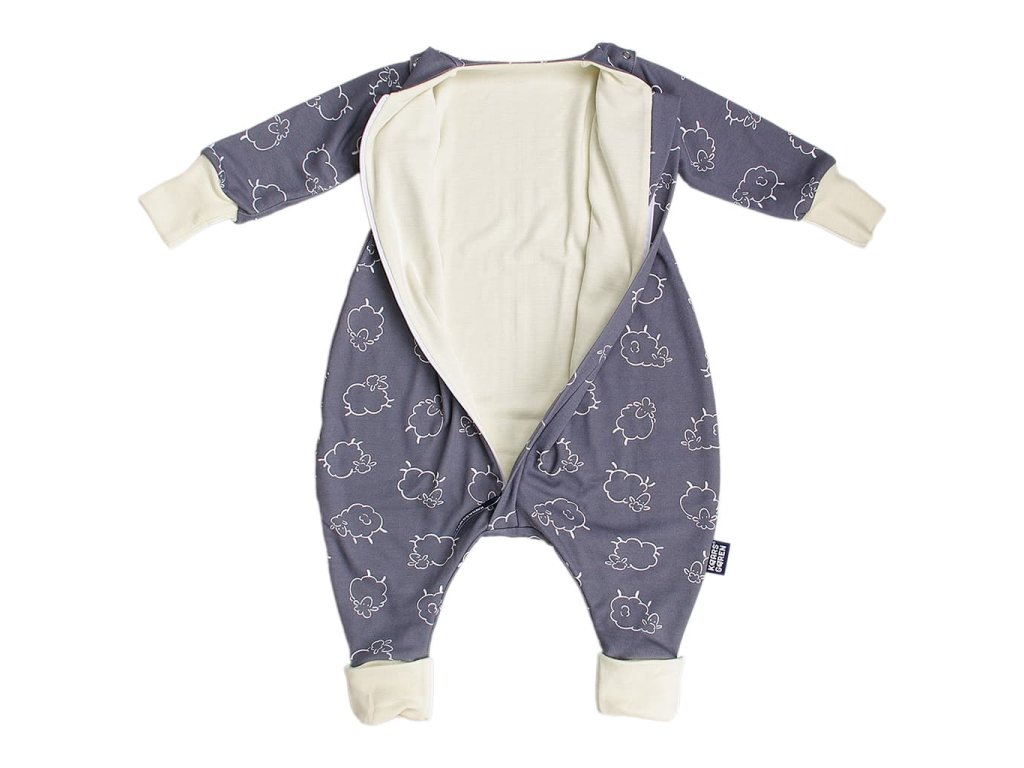 Merino spací vak s nohavicami a odnímateľnými rukávmi – sivé ovečky