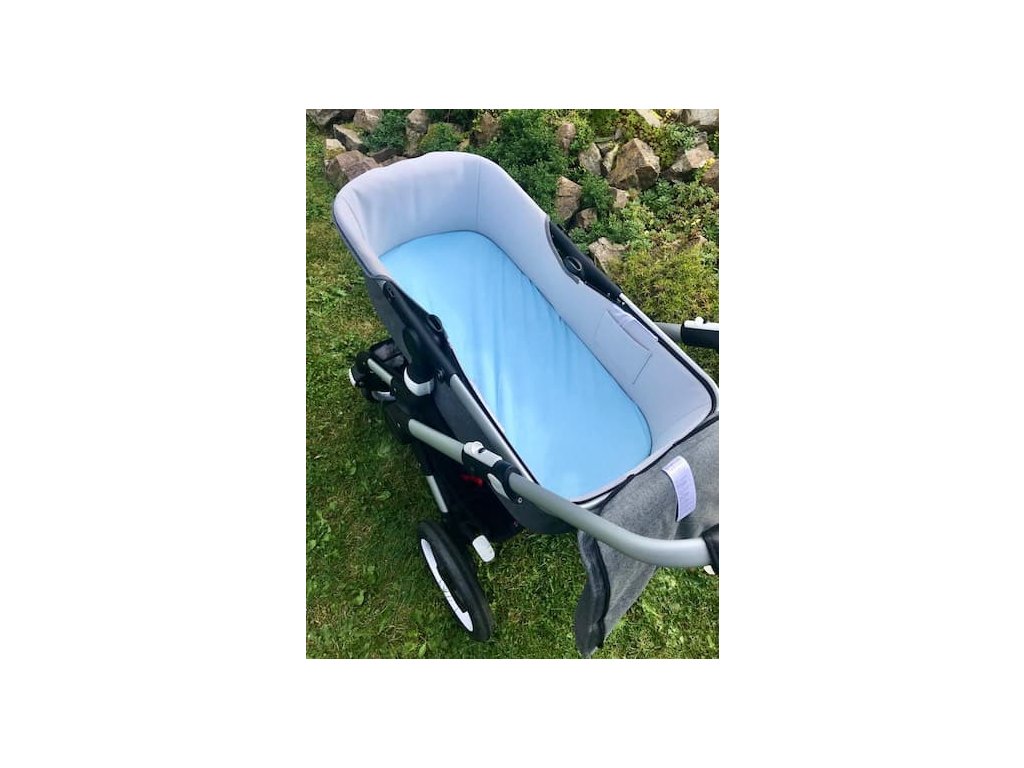 Plachta z bavlneného plátna do kočíka testovaná v kočíku Bugaboo. Plachta je vhodné na matrac 35 x 75 cm. Pranie na 40 °C.