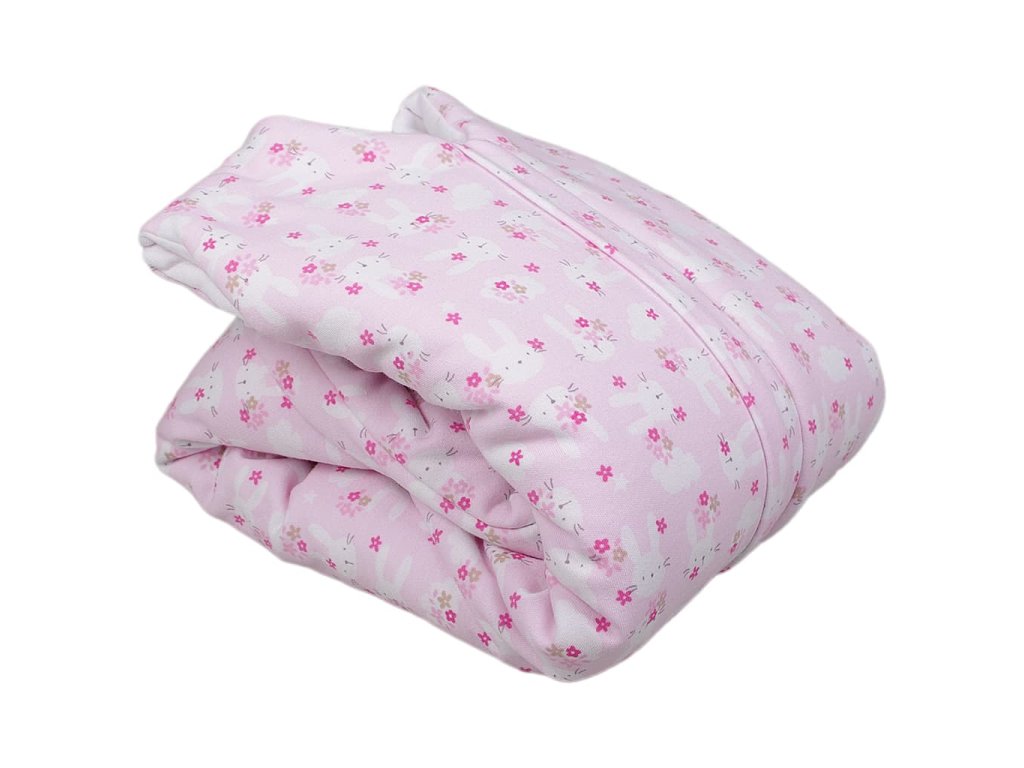 🛌 Zateplený nožičkový spací vak s motívom ružových zajačikov