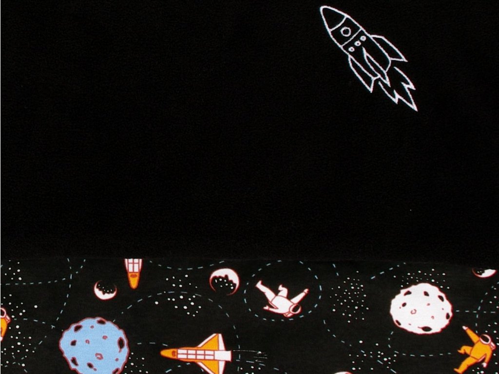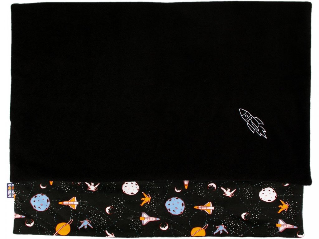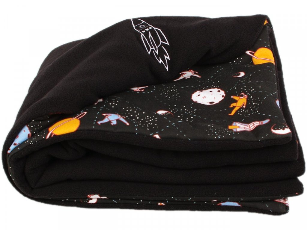 Zateplená deka do kočíka s vrchnou stranou z fleecu, s podšívkou zo 100% bavlny s motívom vesmír a vnútri zateplená dutým vláknom značky Valtherm. Deka má použitie po celý rok, pretože Valtherm má výborné termoregulačné vlastnosti. Rozmer deky je cca 70 x 100 cm, môže sa prať v práčke na 30° C. Detské deky šijeme v ČR z materiálov certifikovaných na výrobky pre deti do troch rokov.